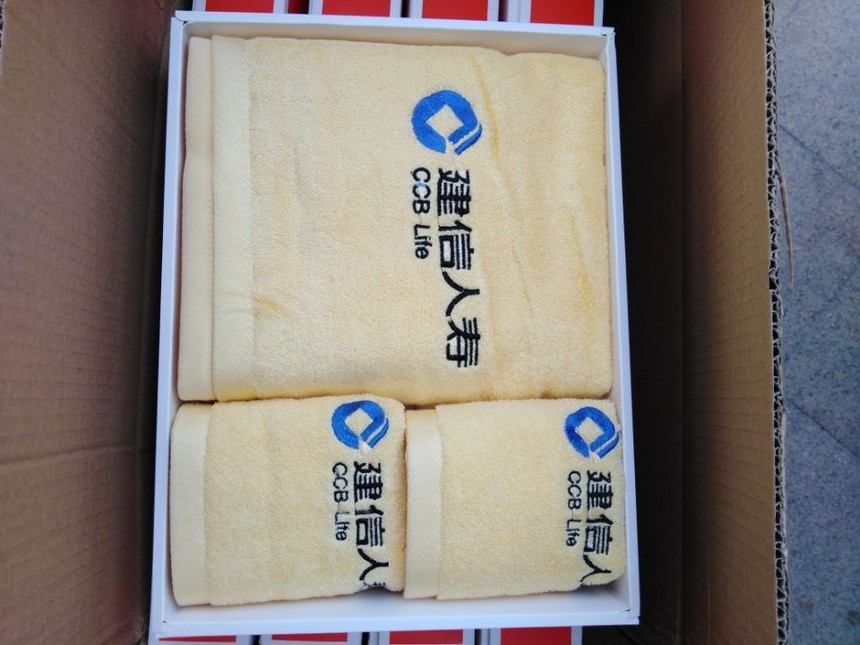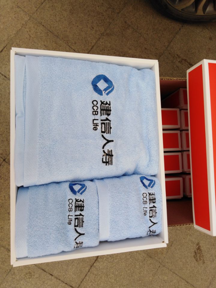 中國建設銀行旗下建信人壽長江路支行定制專屬浴巾毛巾1000套,用于回饋客勤以及年終活動專用。